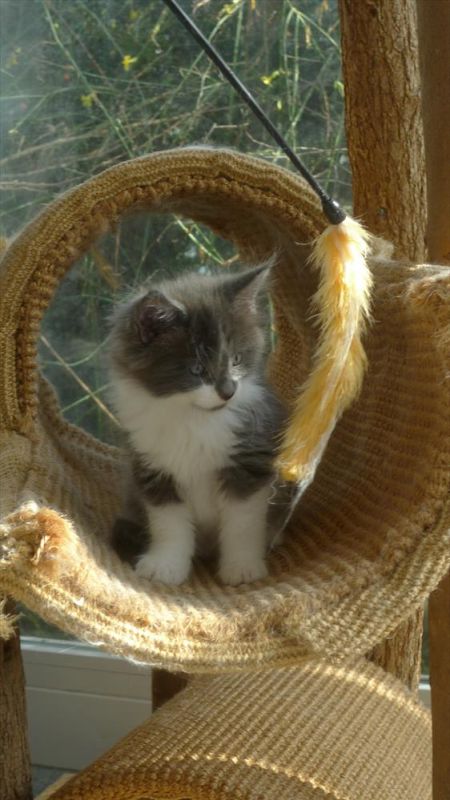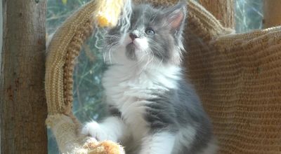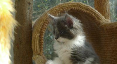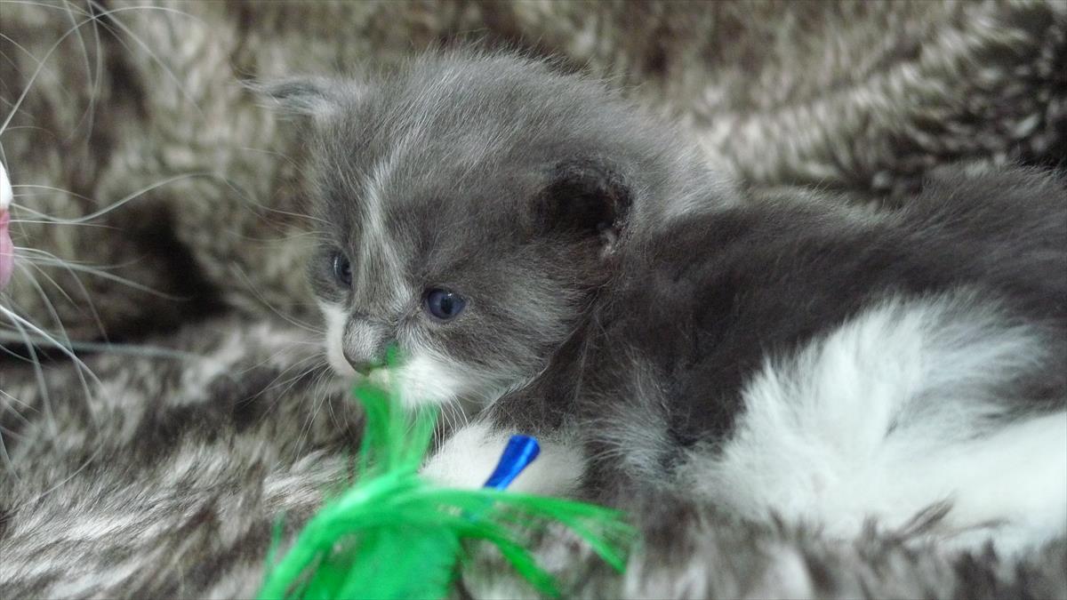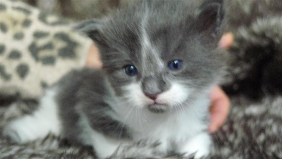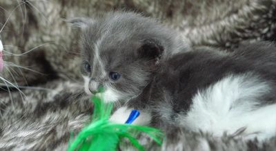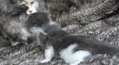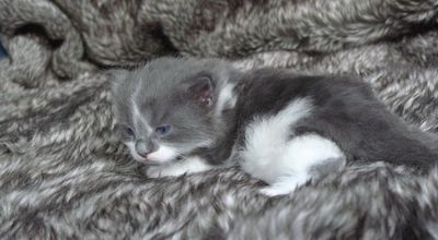 Bois wurde als drittes Kitten dieses Wurfes geboren. Eigentlich hatte ich mir von Mama Alexis ja ein blaues Mädchen gewünscht. Da aber beim letzten Wurf kein einziges Kitten mit Verdünnung, also blau oder creme, gefallen war, hab ich nicht mehr wirklich darauf gehofft. Und diesmal sind gleich drei Kitten in blau und creme dabei. :-) Und dann hat Bois auch noch diese ganz spezielle wunderschöne Zeichnung im Gesicht. Praktisch identisch mit der Zeichnung seines Onkels Arkani Ahadi aus dem A2 Wurf. Nur viel feiner und noch symmetrischer.