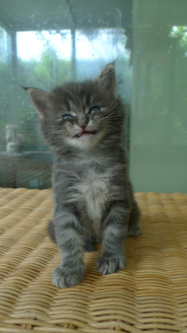 Finlon ist ein absolut aufgewecktes kleines Katerchen :-) Er mault jetzt schon lautstark, weil er nicht über die Kittenabsperrung kommt. Aber da muss er sich noch ein paar Wochen gedulden, bis er durch die ganze Wohnung flitzen darf. Noch ist er zu klein, aber das will er halt nicht einsehen ;-)