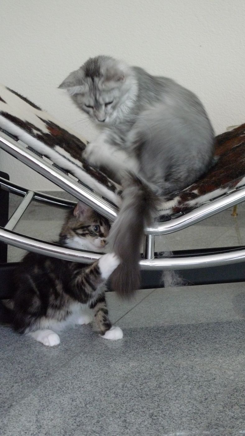 Lange habe ich nach einem passenden Mädchen zur Ergänzung meiner kleinen Zucht gesucht. Und nun ist Maxima endlich da. Sie ist ein kleiner Wirbelwind und Angst kennt sie auch nicht. Mit allen anderen Katzen versteht sie sich prima. Besonders begeistert von ihr sind natürlich Dexter und Rasputin.