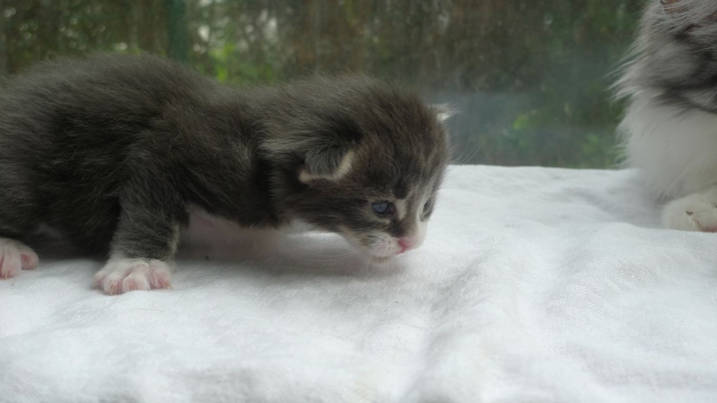 Und als zweiter kam dann Fellow auf die Welt :-) Noch ein Katerchen und noch einmal blue classic tabby diesmal mit weiss. Fellow ist ein richtig dicker Brummer mit 140g Geburtsgewicht :-) Und als besonderern Hingucker hat er eine weiße Schwanzspitze :-) Die hat er von seinem Opa Dravavalley Maximus vererbt bekommen. Gefällt mir persönlich super gut und ich hoffe, wir bekommen noch ein paar Kitten mit diesem süßen kleinen Extra :-)