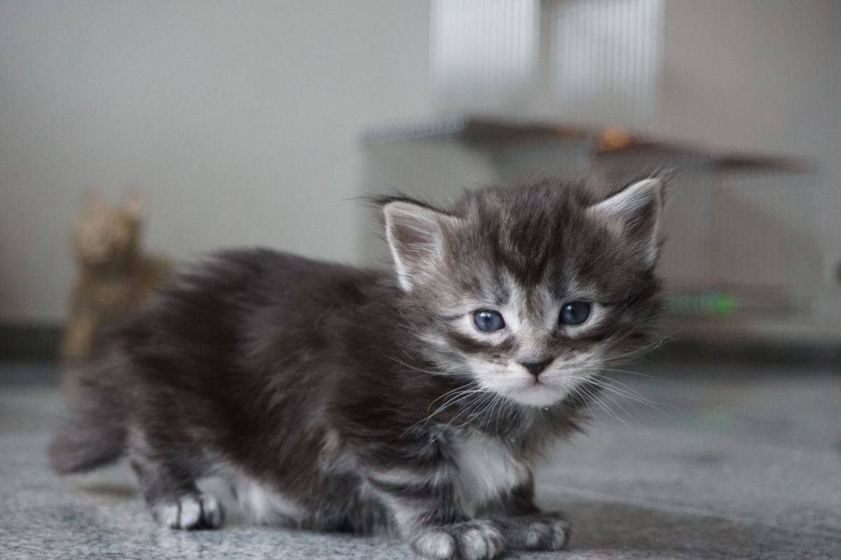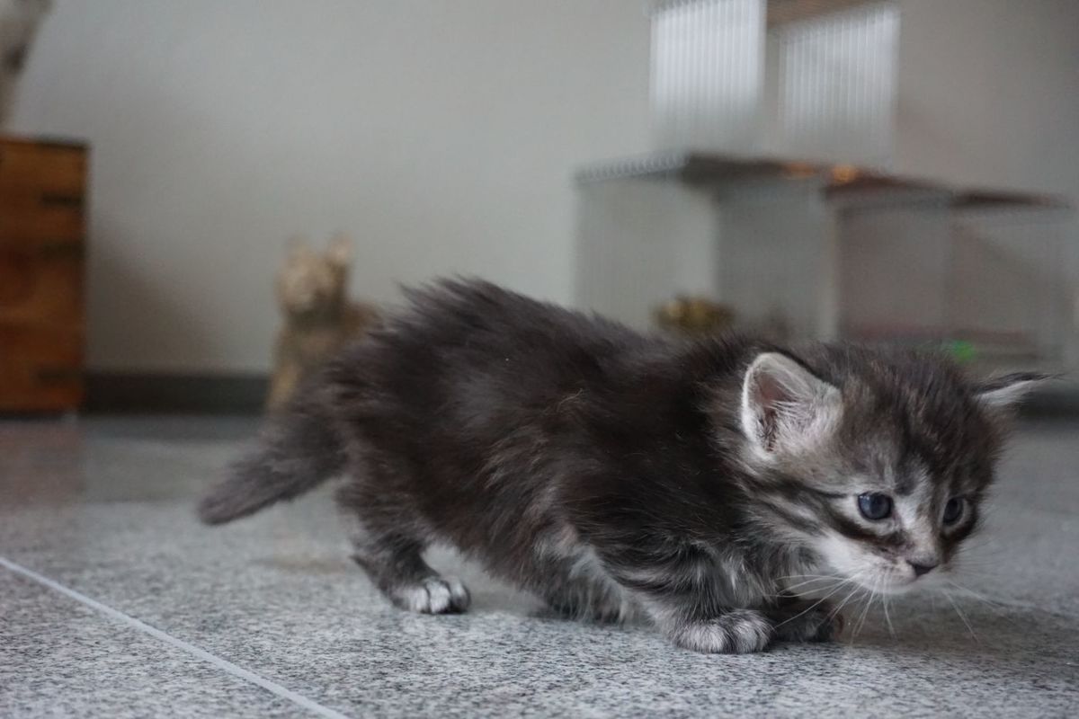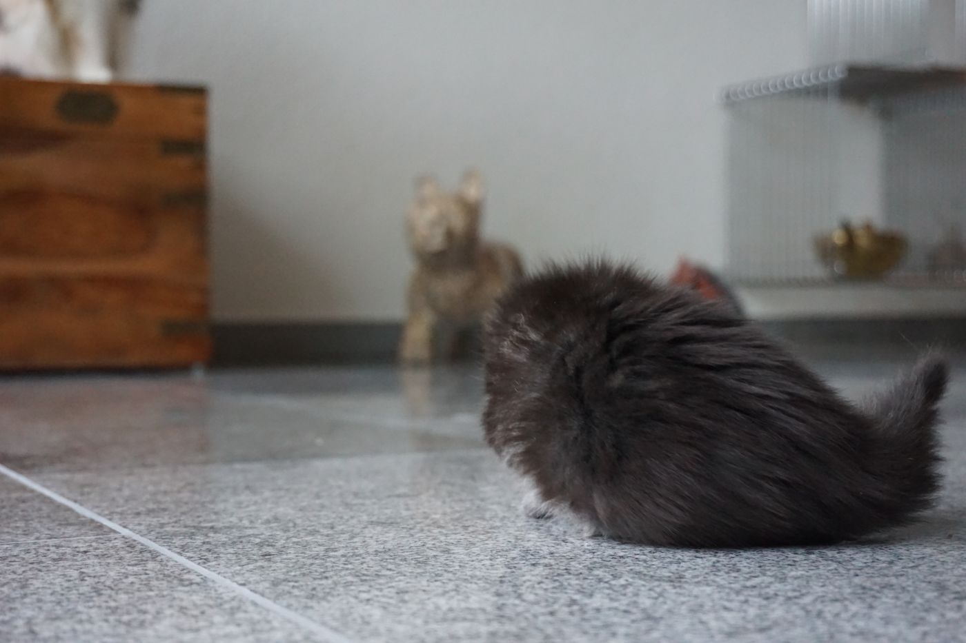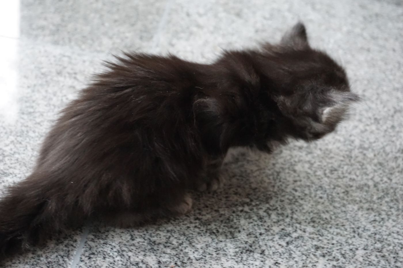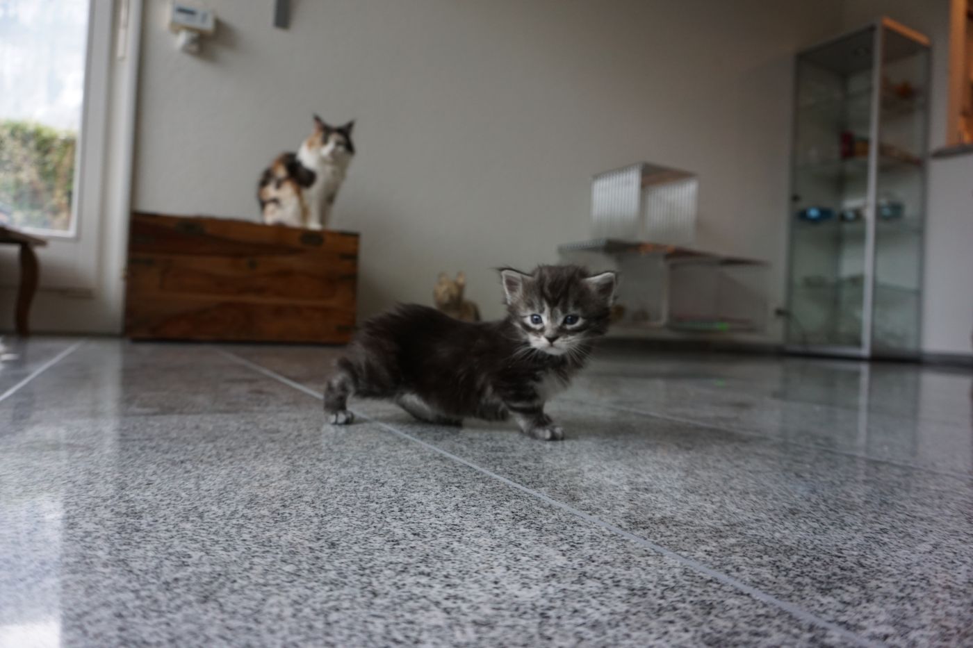 Und dann kam noch Henzo als Nummer 4. Er ist unglaublich dunkel für ein silver tabby :-) Ich bin schon sehr gespannt, wie das in Verbindung mit der ticked Zeichnung später einmal aussehen wird.