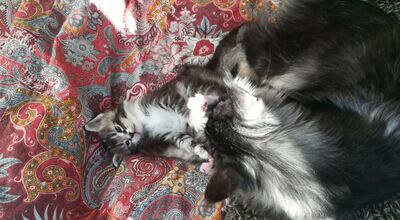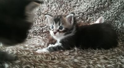 Oskar ist das allererste Baby von meiner Nachwuchchskätzin Tori. Sie hatte einiges zu tun, den dicken Brocken auf die Welt zu bringen ;-) Aber es ging alles ganz Problemlos und Frauchen hatte sich, wieder einmal, ganz umsonst Sorgen gemacht. Oskar ist ein wunderhübscher black silber tabby. Sein Bäuchlein ist immer gut gerundet. Er frisst halt gerne ;-) Und entsprechend groß und kräftig ist er bereits.