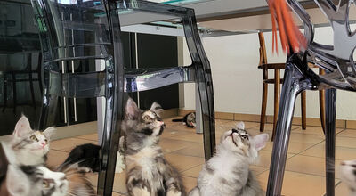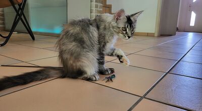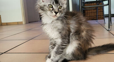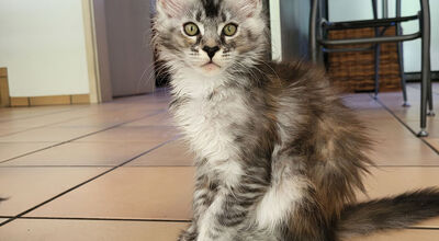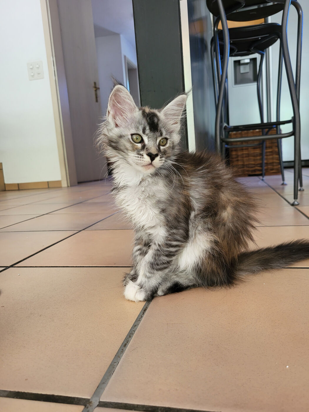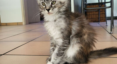 Momentan ist sie vor allem wild und verspielt. Am liebsten turnt sie, zusammen mit ihren Brüdern, auf den hohen Schränken herum. Aber wenn sie sich müde getobt hat, kommt sie auch zum Frauchen, zum Kuscheln und Schmusen.