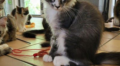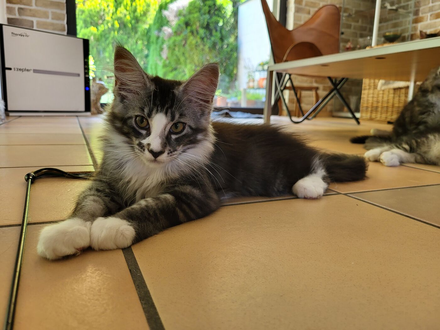 Ansonsten ist er verschmust, wie alle meine Kitten. Und in der Nacht schläft er dann doch lieber im gemütlichen Bett :-)